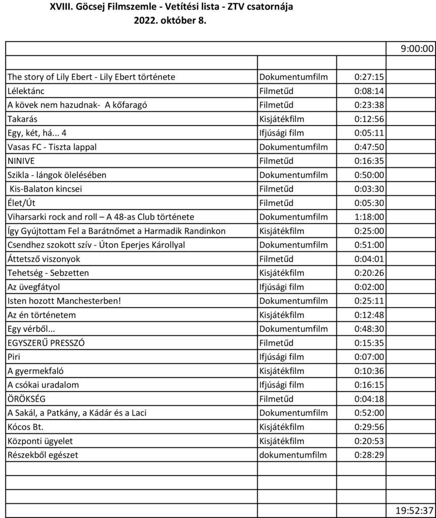 A filmek sorrendje a zegtv.hu oldalon érhetőek el.